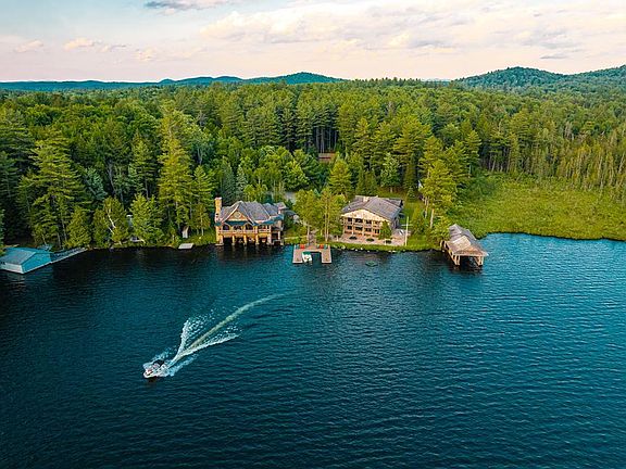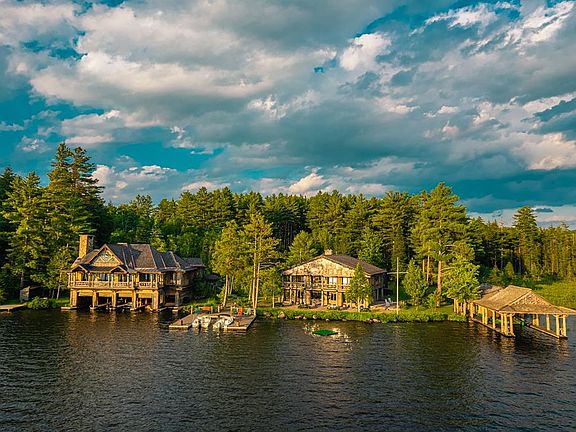 On August 14th, this exclusive lakefront compound with 913 ft of frontage on prestigious Upper St. Regis Lake will be sold at Luxury AUCTION WITHOUT RESERVE! List price used here is for REFERENCE ONLY. Offered in cooperation with Platinum Luxury Auctions. Inquire for details. Camp Limberlost is now being offered in its entirety. Oppt'y to acquire this private Great Camp comprised of 5 ADK-style homes. The property includes the Boat House, Main House, Guide House, Highland House and Donaldson House with a canoe house, trapper's cabin, back-up generator building, add'l building site. This is the only livable boathouse on the lake featuring 4 temperature controlled bays and massive great room capable of hosting dinner parties for up to 90 people. Great views, western exposure, year-round with easy road access, high-speed internet, AC, daily FedEx, UPS and Amazon deliveries making work-from-home possible and within 10 mins. to Adirondack Regional Airport capable of landing a Boeing 757. 2021-08-17