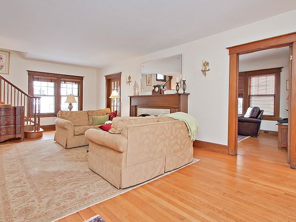 Yesterday's charm with today's amenities. Well Maintained colonial with original chestnut trim, french doors and glass door knobs Vestibule includes original basket weave tile floor., Many updates include artfully designed eat in kitchen with granite counters and stainless appliances and hardwood floors. 3rd floor master has custom walk in closet and beautiful marble bathroom. Hall bath, powder room and basement baths are all updated. Lots of closets and storage. Lovely , deep yard includes paver patio and custom fireplace. Great location close to NYC transportation, schools, town pool and parks. Finished basement offers rec room, full bath and home office. Office can easily be converted to 5th guest bedroom