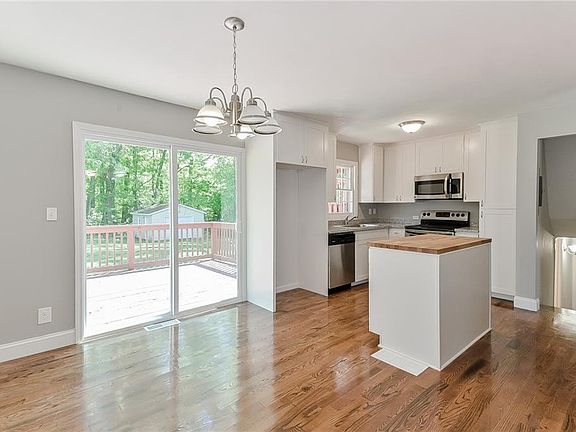Fantastic renovated home! This home is move in ready. This wonderfulhome has new/updated kitchen with granite, hardwood floors, laundry room, 1/2 bath, hardwood flooring, 2 back decks, level backyard with great one car garage out building. The 2 car garage is a one car with a small space on second stall. Part of garage was used to make 1/2 bath and laundry room. Just a few minutes from Shopping, I285, and 75. EXCELLENT location! The house is bigger than sq footage shows- it has a half bath/laundry and finished basement.