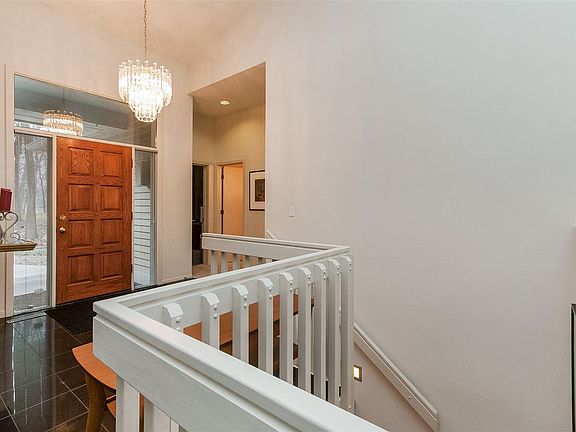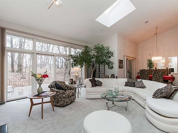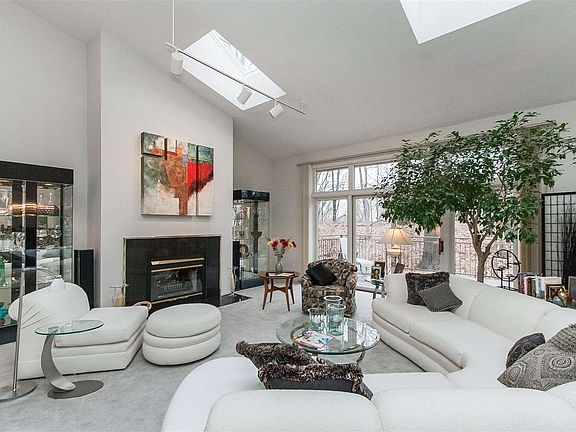 Stunning great room with vaulted ceiling, skylights, fireplace and a wall of windows, kitchen with breakfast bar, first floor den/study. Great room and master suite open to a huge deck overlooking wooded area. Lower level family room with fireplace and built-ins, 2 bedrooms, bathroom, laundry room and storage room. Walk-out lower level. Spacious rooms. Over 3400 finished sq. ft.
