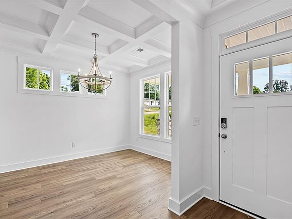 The Finley is a beautiful Craftsman style home with over 2000 square feet of living space perfect for entertaining. Coming into your home from the covered front porch or 2 car garage you will have a separate dining room with coffered ceilings that leads into your beautiful kitchen with upgraded light grey cabinetry and white Quartz countertops, tile backsplash, under cabinet lighting, a center island and peninsula for additional seating, and stainless steel appliances including a gas range/oven and convection microwave. The high ceilings and large windows in the living room allow the room to feel open and get tons of natural light and it leads to the covered back porch which overlooks your private backyard. The Primary Suite is on the main level and features a large walk in closet, double sinks, and a beautiful tiled shower with built in seat. The laundry and powder room complete the first floor. Up the Oak staircase are 3 additional bedrooms, each with a walk in closet, full bath with double sinks, and a great unfinished space perfect for extra storage! All our homes feature our Smart Home Technology Package including a video doorbell, keyless entry and touch screen hub. Our dedicated local warranty team is here for your needs after closing as well. This home is ready for you to make your own and with only 11 homesites, now is the time to make Overbrook your new home! Call today to make your appointment!