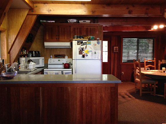 Beautiful, Private 2 story home has wood floors, wood heat and monitor the home has a hard wood spiral staircase going up to the two bedrooms. Private back deck with a lot of trees.