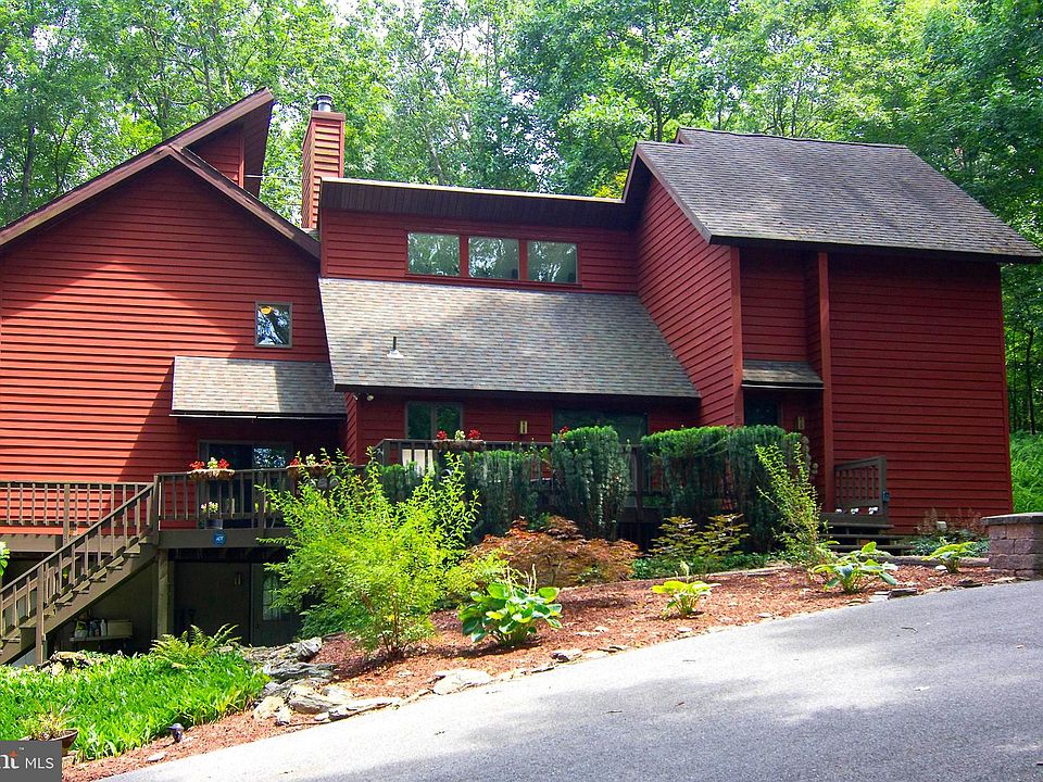 A PRIVATE and UNIQUE home in the woods, in the perfect location...just minutes from Rte's 97, 26, and 70! The country oasis that you always wanted! Off a nice country road, and up a tree-lined driveway, awaits your dream home. Nestled among a 3-acre wooded lot, this magnificent home just "pops" when you come up the circular driveway. The cedar siding, the front deck/porch that runs the length of the home, and the whole setting are just stunning! Head inside to the expansive kitchen & dining area. Boasting 2 different islands, tons of counter space, a separate pantry, a Gen-Air cooktop, double-oven, and pullout sliders to all the cabinets, it is a chef's delight! The extra-large eat-in area, gas fireplace, and sitting area make this a space you will never want to leave! Step into the sunroom and enjoy the light streaming in from the floor-to-ceiling windows AND the skylights! What a great place to enjoy your breakfast and watch the deer stroll by! Step outside the slider to enjoy the back deck and breathe in the fresh air! From here you head into the large main living room with plenty of light due to even more large windows. A great place for the family to gather! The home boasts a main floor bedroom with new carpeting, a walk-in closet, and a full en-suite bath. Head upstairs for the 2nd bedroom (also featuring brand-new carpeting) with 2 closets and another full bath. From the living -room you can also head downstairs to the fully finished basement featuring a walk-out level slider and a wood-burning stove. With a totally-updated full bath in the basement, this could easily be a 4th bedroom! BUT WAIT...there is more! A spiral staircase runs from the garage, straight up through the kitchen, and into the huge primary bedroom! This bedroom is massive and features a vaulted ceiling, a glass slider to a personal deck, and steps down to the yard. There is a walk-in closet and a 2-room primary bath. One room has a double vanity, and the other room features a large jetted tub and a separate walk-in shower! The skylight, large windows, and wood trim make this an oasis on its own! At the end of the day, you can enjoy a hot bath and stare at the lush green trees surrounding your property! This room even boasts its own attic space! All of this is set in 3 acres of wooded land that gives you absolute privacy! The house cannot be seen from the road. The front and back decks allow you to watch the myriad of creatures that stroll by. It truly is an oasis in the woods. And yet...you can be on the major commuter routes ( 97 or 26 ) within 3-5 minutes. A two-car garage, a separate shed, an architectural shingle roof, and beautiful landscaping round out the perfect country home! This 3-acre gem is truly a must-see!! A great executive retreat for anyone working in Washington DC!