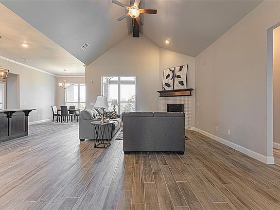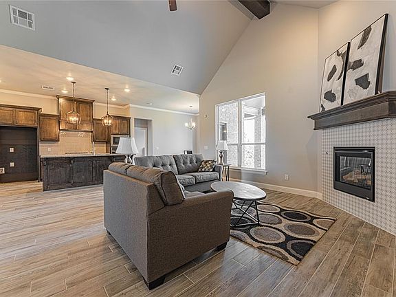Imagine coming home to your own slice of paradise! This incredible 3 bedroom, 2 bathroom home has a luxurious, modern charm and rests in the highly sought-after addition of Canyon Creek in Guthrie, OK. Bright, sunbathed, airy and open, the large kitchen has quartz countertops, modern fixtures, stainless steel appliances, plenty of storage and a large pantry. The kitchen opens to a dining and living room with a cozy fireplace and large windows with spectacular views! Large primary suite boasts an ensuite bright and modern bathroom with a double vanity, a soaker tub with tile surround, large shower and spacious closet. The home also has a study, a formal dining, and two additional bedrooms with an additional full bath. All of this rests on a large, near-acre lot that not only offers a stunning natural backdrop that will take your breath away, but also peaceful, starry nights where you can gather around a fire pit with family and friends and actually be able to see the night sky! This outdoor space will provide a quiet and relaxing atmosphere for you to unwind and recharge, and all nestled in a quiet, family-friendly neighborhood near Edmond, OKC, and Tinker. Get ready to create lasting memories in this serene haven! PLUS the Builder is now offering $10,000 towards buyers' closing costs, rate buy down or incentives!