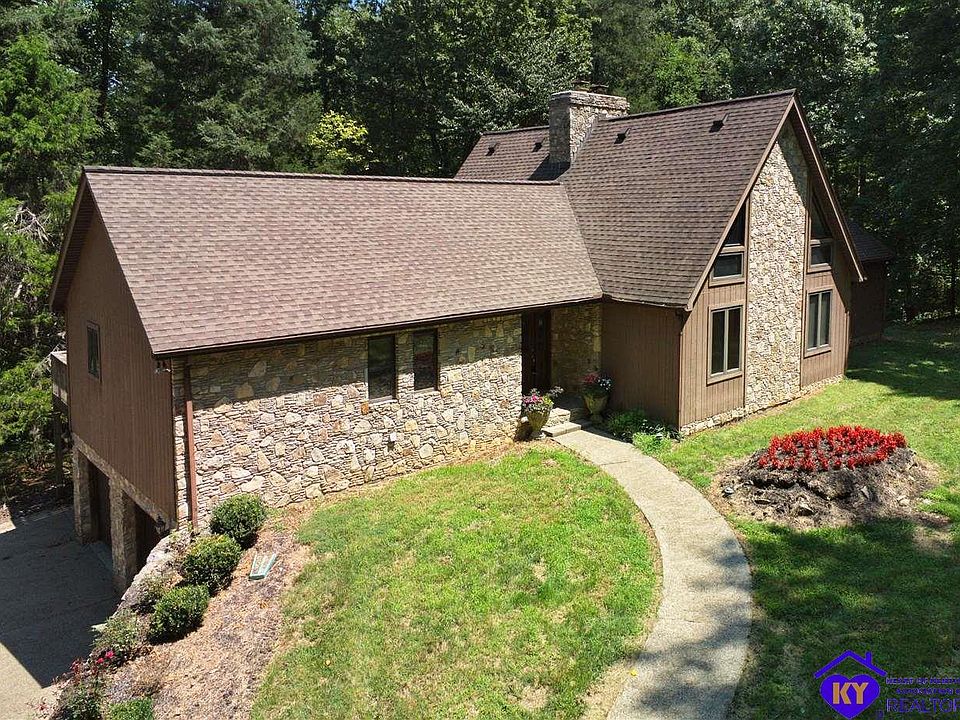 You will not find another property like this. Very unique home and very private home nestled into a wooded setting next to Cedar Creek. Tranquility and space like this is difficult to find, especially just 5 miles from Ring Road in Etown, 13 miles from Ft Knox's main gate, and 7 miles from I-65 exit 102. Whole-house propane backup generator. Stonework sourced from the nearby creek adds a look and feel that you will not find elsewhere. You must tour this home to truly appreciate it.