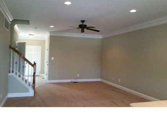 - Ceiling Fan(s), Kitchen Island, Recessed Lighting, Walk-In Closet(s), Dining Area, Eat-in Kitchen, Crown Molding, Carpet, Open Floorplan, Attic, Master Bath(s), Combination Kitchen/Dining, Stall Shower