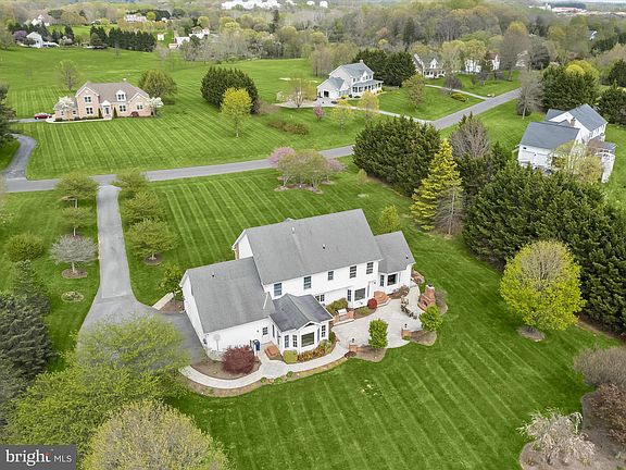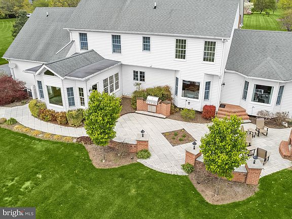 Fantastic value in this spectacular executive home! Offered for the first time by its original owner, this custom-built brick colonial sits gracefully on three private acres and offers over 5,500 square feet of refined living space. With fresh interior paint, beautifully renovated bathrooms, and exceptional outdoor living spaces, this home blends timeless elegance with thoughtful updates inside and out. A long, private driveway leads to the stately façade, set back from the road and surrounded by mature landscaping. Step inside the foyer where chair rail and box wainscoting set a tone of classic craftsmanship. On one side, a handsome home office enclosed by pocket doors features moldings that continue throughout the main level. On the other side, the formal dining room offers a bright, welcoming space ideal for hosting holiday meals or intimate dinners. The heart of the home is the kitchen, designed to combine everyday function with elevated style. Here, 42-inch cabinetry pairs with quartz counters and stainless steel appliances, including double wall ovens. A spacious island with a breakfast bar, a planning station, and a breakfast area with a charming window seat make this room the hub of daily life. From the kitchen, the family room invites cozy evenings with its stone fireplace, crown molding, and sun-filled bump-out window. Adjacent to the kitchen, a built-in mudroom provides practical storage, and a well-appointed half bath completes the main level. Upstairs, the primary suite offers a peaceful retreat, where hand-honed hardwood flooring creates a warm, natural feel. Two walk-in closets provide ample storage, and the renovated en-suite bath impresses with a double vanity, radiant heated floors, a water closet, and a frameless glass shower with body jets. Two additional bedrooms are connected by a shared bathroom, with each room enjoying its own private sink area and a central shower finished with stylish tile and jets. A fourth bedroom includes its own private en-suite bath, making it ideal for guests or multigenerational living. The upper-level laundry room is both spacious and convenient, with a utility sink and ample room for folding and organization. The finished lower level offers flexibility and comfort with a recreation room, kitchenette, exercise room, half bath, and a large storage area. Luxury vinyl plank flooring throughout this level offers both durability and a modern look. Outdoors, the property is equally exceptional. A backyard retreat awaits with a custom stone patio perfect for entertaining, featuring a built-in grill and a striking outdoor fireplace. Tucked just beyond the main living spaces, an enclosed porch with cathedral ceiling, knotty wood walls, and a bump-out picture window provides a tranquil space to relax year-round. The three-acre lot is enclosed with an invisible fence, ideal for pets to roam freely. A side-loading, painted three-car garage adds both style and function, and recent upgrades including a 2017 water heater and 2025 well pump offer peace of mind. Meticulously maintained and thoughtfully enhanced, this stunning home offers classic beauty, modern comfort, and serene outdoor living in one remarkable package.