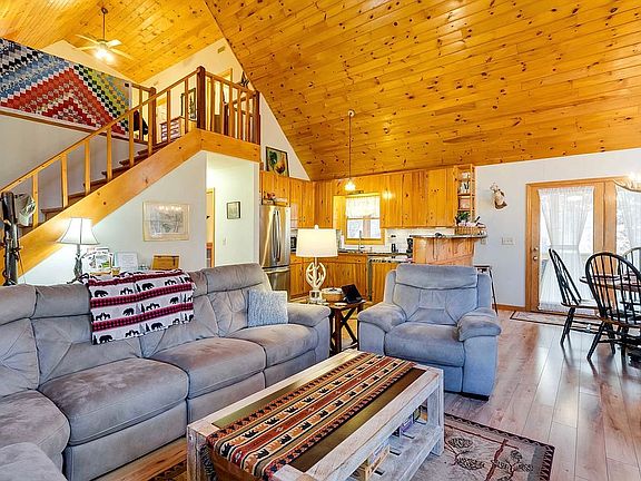 You’ll absolutely love this move-in ready cabin in popular Wells Lake community. Completely furnished down to the dishes! Just bring your suitcase and enjoy this beautiful home or rent it out and make some money! Existing rental website will be included in the sale. See the end of this listing for the link. Newer roof and AC plus newly remodeled 40 x 8 back sunroom with screen to enjoy the cool summer nights. Granite countertops in the kitchen and both bathrooms. Top of the line stainless steel kitchen appliances plus newer washer and dryer. Soaring wood ceilings in the great room with wood burning fireplace. Which currently has an electric insert. 16 x12 shed for storage or make it a workshop. 4 one acre lots surrounding the property are also available separately. Possible owner financing or lease option. Call for more details. 727-967-1756. https://evolve.com/vacation-rentals/448335?utm_source=referral&utm_campaign