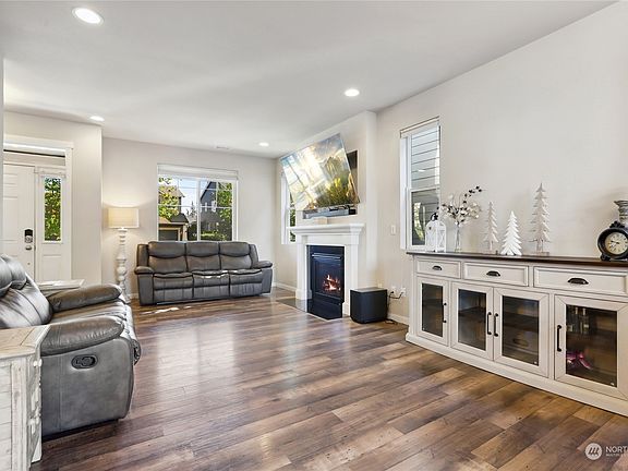 Immaculate and better-than-new 4-bedroom, 3-bath home in Skagit Highlands! The main floor boasts an open-concept living area with a cozy gas fireplace, dining room, and a kitchen with granite countertops, a large island, and beautiful cabinetry. A sliding door opens to the patio and fully fenced yard, plus there’s a bedroom and full bath on the main level. Upstairs features a spacious bonus room, a luxurious primary suite with an en suite bath, two additional bedrooms, and a laundry room. Upgraded window treatments throughout. A must-see home in a prime location!