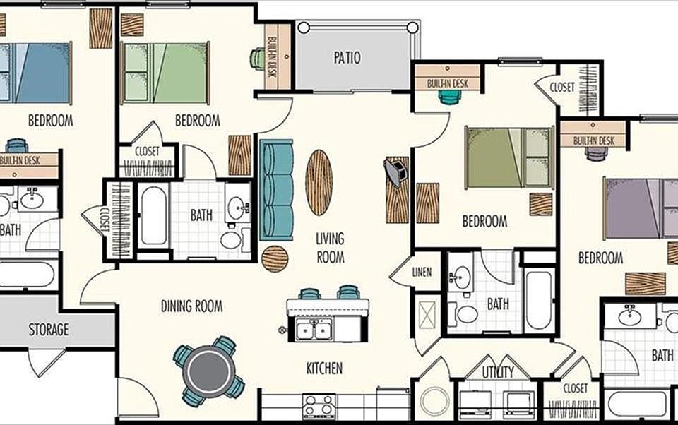 Great investment opportunity! Ground level 4 bedroom, 4 bath condo with laminate wood flooring throughout. Each bedroom is equipped with a mini-refrigerator and microwave; washer & dryer included. Spectacular amenities include: shuttle service to UVA and PVCC, basketball court, volleyball, tennis, pool, play area, clubhouse, and fitness center. ALL BEDROOMS are leased for $2000 total per month. Recently updated flooring and repainted; great condition!