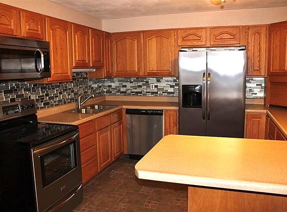 This adorable permanently brick home features 3 bedrooms and 3 bathrooms. Entering the living room to new carpet floors with coat closet behind the door. Spacious kitchen with tile back-splash, breakfast bar, so much storage and cabinet space, a breakfast bar and pantry! Laundry closet is located at the far end of the kitchen. Dining room with beautiful bay window. Family room is massive with a built-in entertainment center, bay window, it's own 1/2 bath and garage access as well as the alarm system. Bedrooms are good in size with mirrored closet doors and organizers inside. Full hall bath and linen closet close by. Master bedroom with great view of the woods and a 3/4 bath! Outside has a massive deck, perfect for entertaining and relaxing, large fenced in yard!!