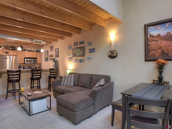 Fantastic and affordable opportunity to own a prime downtown Durango residence! And for the "owner occupant" there is the opportunity to VRBO this unit. This contemporary loft unit features an open floor plan, a half bath for your guests, tongue and groove ceilings plenty of wood detail, stainless steel appliances and industrial lighting. Air conditioning is a big upgrade in this property! Enjoy cool mornings and the evening sunsets off the west facing deck. This loft offers an oversized and naturally well lit Primary Suite complete with large walk-in closet, stackable washer/dryer, and a roomy full bath with plenty of counter space. This unfurnished residence includes one covered parking space plus plenty of overflow parking. Relish coming home at the end of your day to this hip, professional complex just blocks from downtown, the college, the river/river trail, coffee shops, a natural food store, and hiking trails. For the investor or someone looking for a part time Durango residence, these units rent quickly and for top dollar due to quality of floor plan/finishes, availability of parking, and the location. Perfect for long term renters or a monthly furnished rental. HOAs are a low $215 per month, and that includes water/sewer/trash. With only 10 residences, these units rarely hit the market and when they do, they go quickly. Don't miss this opportunity to buy low so close to the best things Durango has to offer.