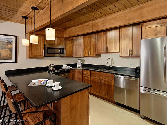 In the heart of the Core SOuth facing corner unit with views up Aspen Mountain. Two bedroom Two Bath is perfect for a holiday in Aspen. Airy and bright, steps from the Gondola and town. Granite counter stainless steel appliance.