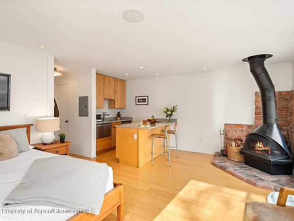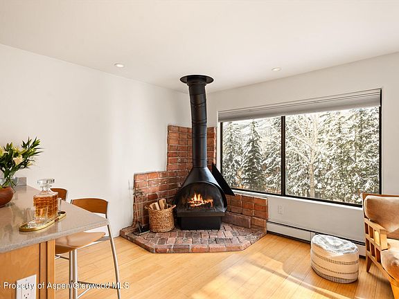 This top-floor corner unit has an abundance of natural light with views of Red and Smuggler Mountains as well as the Roaring Fork River. Nestle by the wood-burning fireplace or grab your skis and walk to the gondola. Previous renovation brought this unit life with high-end appliances including a wine fridge, quartz countertops, and bamboo flooring. Arguably the best unit in the building and a must see in person. Unit 304 next door is also available MLS# 183043.