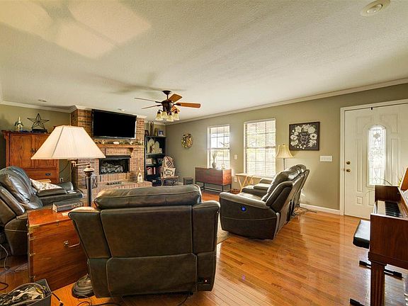 This amazing home is nestled on 2.74 acres in between farmland and rich mature trees! As you drive down the long circle driveway, you will fall in love with this ranch style home that has been meticulously maintained! The covered front porch provides the perfect space for morning coffee and fresh air! Upon entering, you will first notice the gleaming hardwood floors! The beautiful brick fireplace with an elegant mantle will then catch your eye! Your guests will love watching the game while warming up beside the gas fireplace! This grande living area boasts crown molding, recessed lighting, and an upgraded ceiling fan. The hardwood flooring then carries you into the dining area. You will find plenty of space for family gatherings as well as access to the screened in back porch.