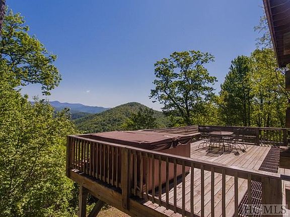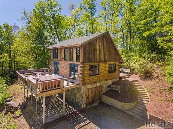 If you are looking for a true rustic mountain cabin, this is it! Located in the gated community of Laurel Falls, you will feel the stress slip away as you meander up the road through the Christmas tree farms to this 14.4 acre home site. Be one with nature and enjoy the huge mountain views from almost every room of this cabin. Bedrooms and full baths are located on each level with 2 bonus rooms and a full bath roughed in on the lower level. Lots of outdoor living spaces with a deck off of the back and the front and a stone patio on the lower level. The biggest decision you have is whether you want to relax in the hot tub on the back deck, sit by the fire pit, go hiking or take the ATV path to go fishing in adjoining Robinson Creek. Home is on a private well and has a generator. The Laurel Falls community adjoins the 6300 acre Panthertown Valley for hiking, biking and horseback riding. Call today to schedule your private showing.