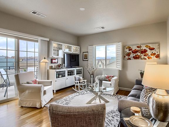 Modern, bright and spacious 1066 square foot unit situated on the top floor of a four storey building. Lots of windows, hardwood floors in living areas and carpets in bedrooms. Very energy efficient in summer and winter, with dedicated air conditioning and heating. Southwest views of mountains from the balcony and master bedroom. Ensuite master bathroom, guest bedroom with adjacent full bathroom, plus study and full size washer and dryer. Modern kitchen with granite counters, fridge/freezer, range, dishwasher, microwave and disposal. Underground parking with storage cage. Centrally located in Highlands Ranch Town Center. Walking distance to supermarket, shops, restaurant, library and public transit. Twelve month lease agreement, renewable on an annual basis. Owner pays HOA fees, including water and trash. Renter pays for gas, electric and internet. No smoking unit.