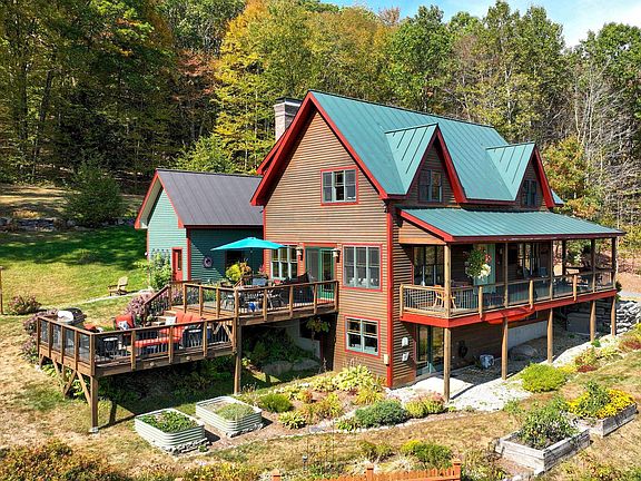 Beautifully maintained 2005 Contemporary Cape nestled on 6.7 private acres with sweeping long-range Vermont views. Owned and cherished by just one family, this move-in-ready home offers the best of country living with modern updates. The completely renovated kitchen boasts a Wolf range, Sub-Zero refrigerator, Bosch dishwasher, and quartz countertops, seamlessly flowing into the dining area—perfect for entertaining. The cozy living room features a wood-burning fireplace insert and opens via sliding doors to a multi-level deck with panoramic views. Enjoy peaceful mornings on the wraparound covered porch surrounded by nature. With 4 spacious bedrooms, including a serene primary ensuite, there's room for everyone. The finished walkout basement includes a large exercise room, office with wood stove, full bath, and guest bedroom. Recent upgrades include Brazilian rosewood flooring upstairs and a whole-house Kohler generator. The extended one-car garage includes a full workshop space. Paved driveway for easy maintenance. Outside, explore walking trails, tap 14 mature maple trees, or harvest blueberries and strawberries from your own garden. Only minutes from Chester’s charming town green—this is Vermont living at its finest.