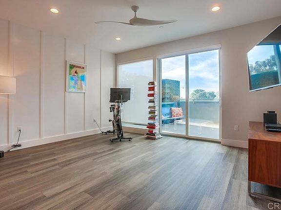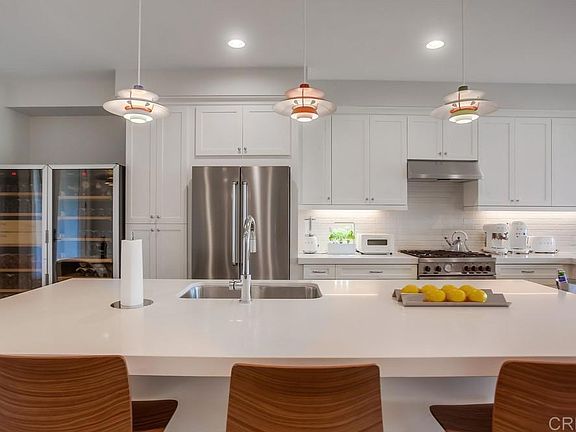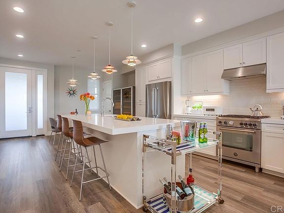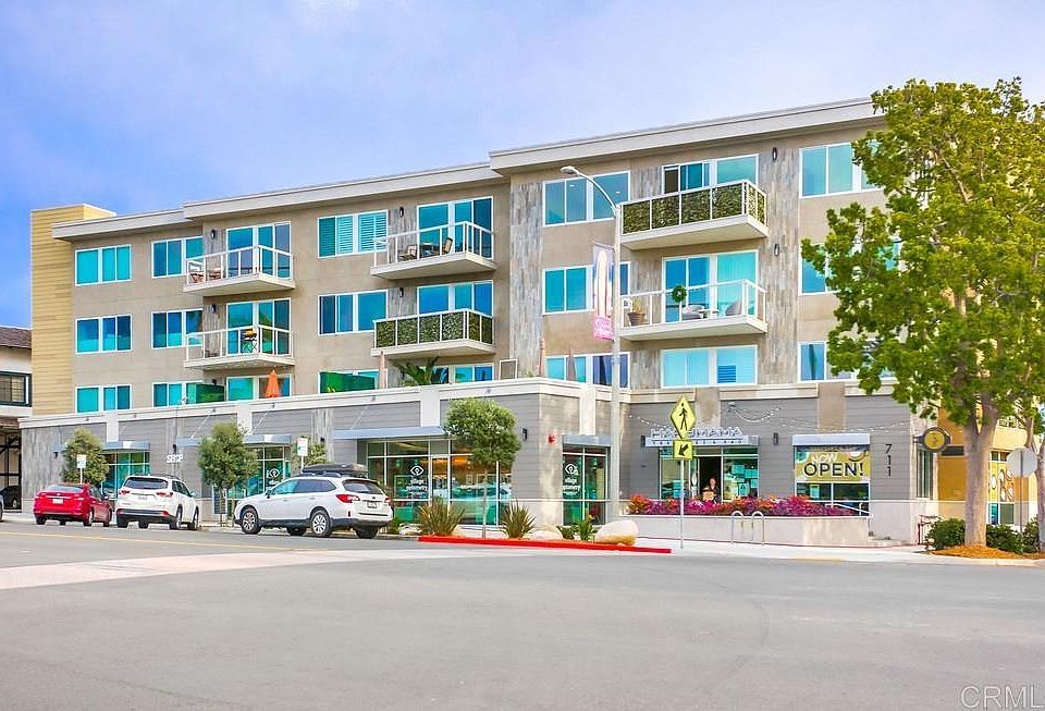 Live in the heart of Carlsbad Village in a quiet luxury complex just blocks to the beach! Experience city life in this modern single level located in the perfect spot in the village with minimal noise and maximum livability. The modern open floor plan features a dining area, huge kitchen with island, living room and a large deck overlooking the future Carlsbad Grand Ave Promenade. Enjoy quartz countertops, luxury flooring, white shaker cabinetry with soft close doors, chef's kitchen with island, 2 counters that accommodate 8 bar stools for the ultimate entertaining experience. This gorgeous offers custom paint, designer energy efficient LED lighting and mirrors, Hunter Douglas Sonnette Power View motorized blinds & custom plantation shutters, Bertazzoni Master Series appliances including 4 burner gas range, French door refrigerator + Sharp microwave drawer, full-size washer & dryer in-unit laundry & bonus of 2 additional storage closets off the private deck & walk-in storage closet in the breezeway. The primary bedroom has a slider to the balcony and the primary bath has a large walk in shower, a heated Toto and towel warmer, and a large walk-in closet. The second bedroom features a custom-built murphy bed, closets and office space. The home was built with style and comfort and has upgraded sound proofing so the city and neighbors are almost unnoticeable. This is such a great small complex in a surprisingly quiet area with great walkability! A new grocery store is being built right across the street. Walk to the beach, post office, bars and restaurants or just enjoy a sunset on the balcony with this rare opportunity!