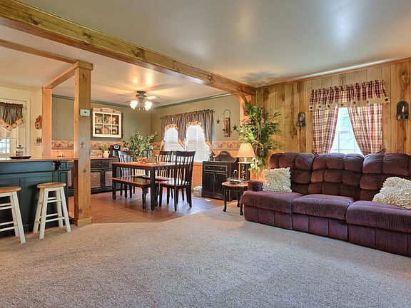 One Story living in scenic setting! 3 bed, 1.5 bath, open floor concept country home on .62 of an acre! This home boasts central air, 3 season room, and a detached 2 car garage with electric. Basement has a finished family room with new acoustic ceiling, and new hot water heater. Home contains unique touches for added character. Don't miss this one!