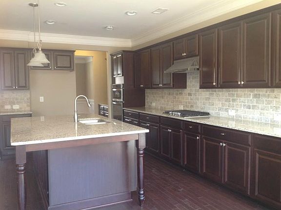 Ready Now! Top location 1.2 miles from GA. 400 via Hwy 141. Close to The Collection. Thornton floor plan is open, spacious and provides lots of living area. Beautiful Cherry Java cabinets, Granite counters, ss appliances. Hardwood on main, stairs & upper hall. Guest room on main level with full bath. Delightful, sunny master suite with double trey ceiling, spa bath and roomy walk in closet. Secondary bedrooms are wonderfully large. Daylight basement walks out to wide, level yard. Some photos are of a furnished model home of the same plan, not actual home