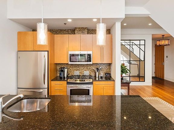 Dramatic 2-Bedroom, one and a half bath loft duplex at the South End's coveted ArtBlock. This sleek urban oasis features soaring ceilings, open layout and a two story wall of windows. The spacious main level is ideal for entertaining, boasting a lovely granite/stainless kitchen with mosaic tile backsplash, breakfast bar, and an expansive living/dining area. A striking modern staircase with steel cable rail system leads to a second bedroom. The large master suite has a walk-in closet and spacious tile bath. Additional amenities include bamboo flooring, custom window treatments, architecturally-inspired light fixtures, a deeded garage parking space and your own private entrance from the Street. Professionally managed building steps to Boston Medical Center, Foodies, Whole foods, Estragon and all the South End has to offer.