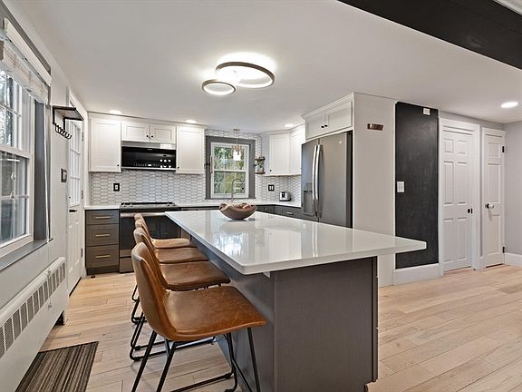 Nestled among the trees, set back on a generous 40K sq/ft lot with spectacular views awaits this Picture-Perfect Cape that is move-in ready & offers 3 Bedrooms & 3 Bathrooms. Beautifully renovated Kitchen/Dining room combination features Hickory hardwood floors, fine cabinetry, an over-sized island & SS appliances. A charming & inviting Living Room features a wood burning fireplace, an oversized bay window & original red oak hardwood floors. The 2nd Floor features a new dormer adding a Full Bath, Bonus room & expanding the size of the Primary Bedroom boasting oversized windows to enjoy the views! A nicely finished lower level adds a Family Room for extra living space, full Bath, laundry, built-in cabinets & storage. A large wrap around Deck overlooks an amazing Backyard that hosts an oversized, powered & insulated Shed & Hot Tub. Roof, heating system, a/c heat pump & windows are all recently updated. Easy access to I-95, Wakefield Lake & just steps to the Bare Meadow walking trail.