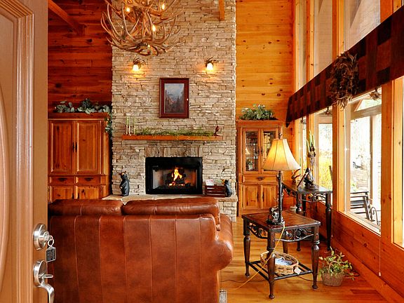 Unbelievable views of the Great Smoky Mountains from this exquisite custom log home. Wide open floor plan with soaring stone fireplace and huge antler chandelier as a focal point of the Living Room. The wall of glass will bring the the postcard layers of the Smokies into your living room! Gated community and public water source. Quality, Luxury and beauty all in one home.
