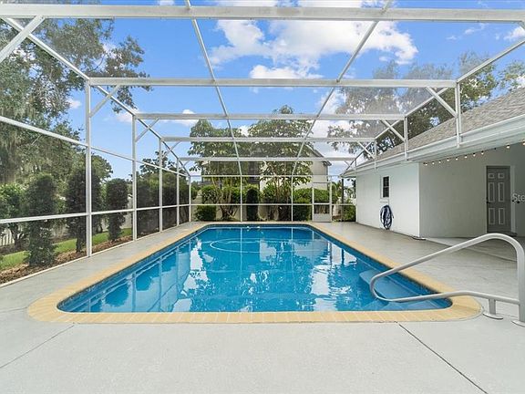Refreshing screened-in poolEat-in areaStriking coral tile fireplaceSpacious kitchenWalk-in showerCrown moldingUltimate backyard privacy
