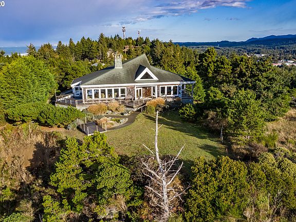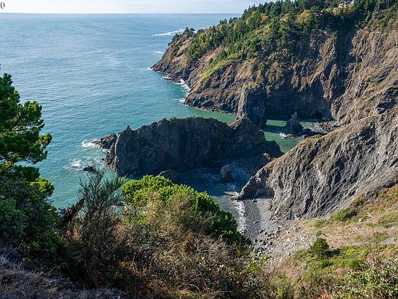 STUNNING COASTAL CLASSIC STYLE HOME WRAPPED WITH SHAKE SINGLES AND ROCK OFFERS DRAMATIC CLIFF SIDE VIEWS OF THE SOUTHERN OREGON COASTLINE; MAIN FLOOR LIVING FEATURES A GENEROUS SIZE MASTER SUITE WITH OCEAN VIEW DECK;GOURMET KITCHEN WITH WOOD STOVE;LARGE LIBRARY/OFFICE. ALL 3 LEVELS ARE ACCESSIBLE BY ELEVATOR; LOFT AREA WITH OCEAN VISTAS. ENTRANCE HALL, 1/2 BATH, LAUNDRY ROOM ALL ON MAIN LIVING LEVEL. 2 BEDROOM/2 BATH GUESTS QTRS AND ARTIST STUDIO ON GROUND LEVEL. LARGE OVERSIZED ATTACHED GARAGE.