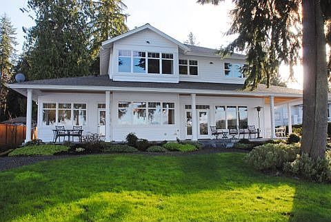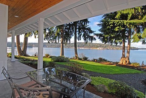 Live on Port Ludlow's 'Gold Coast' in this custom waterfront home on a private acre-plus treed lot. Enjoy sweeping views of the Olympics, Ludlow Bay, the Shipping Lanes and the Cascades from each room on the water side. A spacious master suite on each level to accommodate changing needs. Red Oak floors throughout. Tiled bathrooms. Large cook's kitchen w/2 ovens & huge pantry. Charming courtyard entry. Stairs to the sandy beach. Fenced outbuildings with a shop area, room for an RV. Amazing storage!