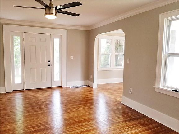 This stunning bungalow has been completely renovated. New kitchen with beautiful tile back-splash, new floor, all new stainless appliances, and grounded outlets. 2 bedrooms on the first floor and a completely updated full bath, beautifully restored 1920's oak hardwoods. new vinyl replacement windows, new electric service, new light fixtures, freshly painted throughout and the second floor has been renovated to a beautiful master with full bath. Also check out the freshly poured concrete floor in the garage, metal roof and new asphalt driveway.
