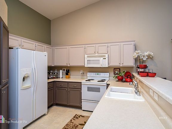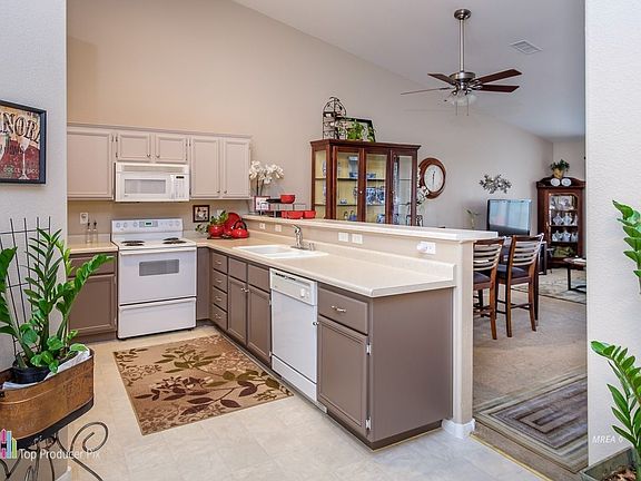 Shows very well......Subtle contemporary colors have been chosen for "repainting" the interior walls of the home AND the kitchen cabinets as well as the bathroom cabinets. Vaulted ceilings throughout the home bring added flair . Popular open floor plan allows guest interaction between the kitchen, dining area and the living room as you can see directly from the kitchen all the way to the sliding glass doors on the far end of the living room. Entryway has a floor to ceiling glass window accenting the front door providing lots of natural light to the front end of the home. Master bedroom is exceptionally spacious and is accented by a large picture window. Walk-in closet in the master bedroom is extra roomy with built in shelves for shoes, sweaters etc. Guest Bedroom is on the opposite end of the home providing privacy for your guests....as well as you. Laundry room is just off the entryway from the garage. Back patio is fully covered by an awning for year round enjoyment. Backyard has a dry river bed for enhanced landscaping. Yes...there is a 1 car garage. Move-In Ready. Pre-escrow has been opened with Fidelity Title.