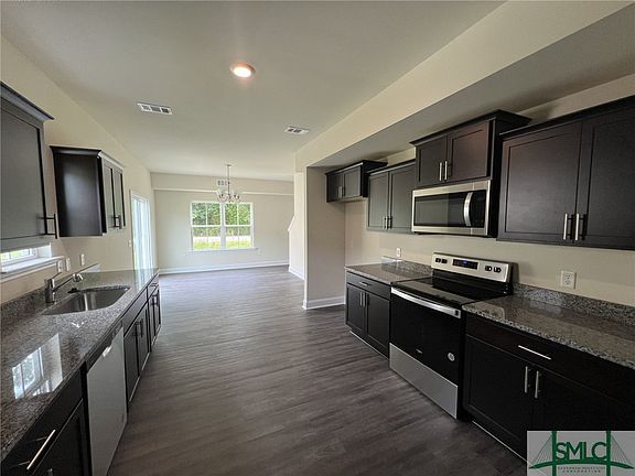MOVE IN READY!! The Fairbanks by Ashwood Fine Homes is a 4 bedroom 2.5 bath 2 story home. Granite counter tops in kitchen with LVP in common areas. Laundry room on 2nd floor. Minutes away from Ft. Stewart entrance. No HOA!
