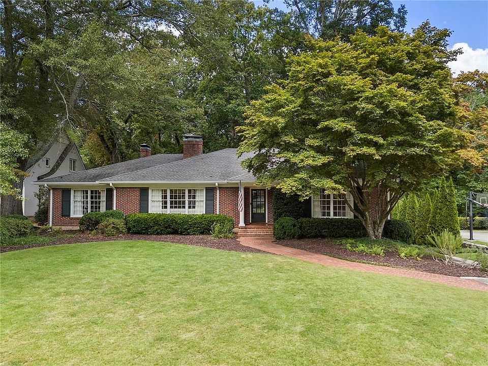 Situated in a prime Buckhead location, this 4-bedroom, 3-bath ranch features a well-designed layout with plenty of living space all flooded with natural light. The welcoming floor plan features a spacious living room that leads into a large dining room, connected to the kitchen with stainless steel appliances, a dry bar, and plenty of storage. A second cozy living room with a fireplace is adjacent to the sunroom, which opens to a large patio with a fire pit and views of the private wooded lot. The primary suite includes his-and-hers closets and a bathroom with a double vanity and walk-in shower, while two generously sized secondary bedrooms share a beautifully updated bathroom with dual vanities, a separate shower, and a tub. The finished basement offers flexibility as a guest suite with a full bathroom or as a bonus space for a playroom or additional living area. Located in the desirable Jackson School district, with quick access to Pace Academy, ACA, and the Atlanta Speech School, as well as nearby I-75, restaurants, and shopping. You don't want to miss this one!