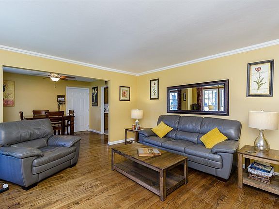 Awesome 5 bedroom 1.5 story home on an even more awesome lot ready for new buyers! Great front and back yards with plenty of trees for privacy, long concrete driveway, great patio space, shed for lawn equipment & more! Well maintained builder finish hardwoods throughout main and upper levels (with exception of kitchen/baths). Living Rm and Family Rm on main level which works great when you want to watch different shows on TV! Plus dining area and eat in kitchen with pantry. Walk out to huge patio in fully fenced, level back yard! Master bdrm w/ceiling fan plus addl bdrm (currently used as office) on main level. Cute full bath w/wood like tile floor! Upper level offers 3 large bdrms w/ceiling fans, one w/private access to full bath w/updated flooring. Lower level offers office/exercise room & tons of storage and walk up to exterior. Awesome, finished garage w/metal ceiling. 1 yr warranty. Great location with easy access to highway, restaurants & shopping! Don't delay!