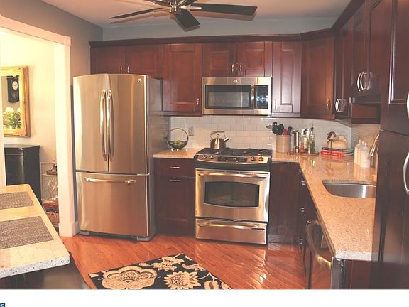 This absolutely beautiful 3 bedroom 2 ~ bath townhome is completely move-in ready and waiting for you! The first thing you'll notice as you walk in is the lovely oak hardwood floors throughout the entire house w/ upgraded molding on all doors and doorways w/ 5 ~" x-wide baseboard trim. The updated kitchen includes a Breakfast Bar, granite counter tops, cherry cabinets with crown molding, under counter lighting, and GE profile stainless steel appliances. Recessed lighting throughout the first floor and basement. As you move through into the living/dining area, you'll notice ~an impressive space for entertaining with plenty of natural light and easy access to the stamped concrete backyard with a new fence. Half-Bath & Laundry Room complete the First Floor. Upstairs you will find the master suite with walk-in closet and ceiling fan and en-suite bath featuring ceramic tile, stone flooring, and an extra deep 17" soaking tub. Two other nicely sized bedrooms both include ceiling fan with light and are in close proximity of the 2nd Full Bath. Pull down attic for plenty of storage. Full Finished Basement adds additional living space for entertaining Family & Friends. The one car garage provides for even more storage. Perfection with an unbeatable price! Over $75k of top quality upgrades! Small town living close to the light rail, major highways and bridges for easy commute to Pennsylvania, New York, and the Jersey Shore make this a "must see home" for all buyers. Make your appointment today! Additional features: brand new windows, brand new roof