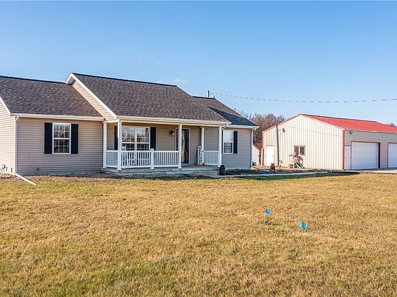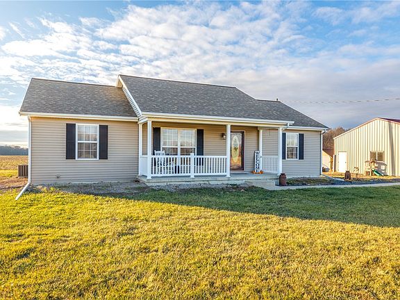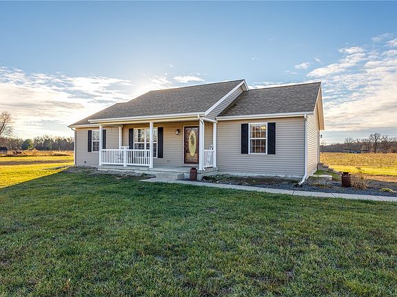 Newer construction Ranch home (2014) built by Custom Family Homes on 4.06 acres. This home features a total of 5 Bedrooms (2 up and 3 down), 2-1/2 Baths, and a Detached 4 Car Garage that is fully insulated and heated! The Kitchen features an Island and all Stainless Steel appliances. There is a Sun Room in the SW corner of home with great views. Currently about 3 acres are tillable with cash rent to buyer. The lower level is finished with 3 Bedrooms, a Family Room, and a Full Bath. Here's a chance to get a newer construction home and not break the budget. Effingham Schools. Fiber optic cable to house!