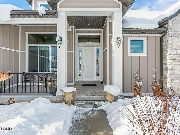 This bright, sunny home is immaculate, with vaulted ceilings and oversized windows that frame expansive mountain views. Enter the main-level great room with designer kitchen, office/den, en-suite bedroom, laundry room, mud room and more. Downstairs there are 2 additional bedrooms and a large Jack n Jill bathroom. Add cold storage and an additional 1,157 sq ft of unfinished space for more bedroom(s), a rec room, theater room, or whatever you can imagine. The heated 3-car garage is well equipped with epoxy flooring, plentiful storage and extra space for motorcycles, toys and hobbies. But, the grand finale is the backyard oasis, featuring stacked-stone, solar-heated Pebbletec pool with flowing hot tub, storage shed with half bath, large covered deck and fully landscaped yard. Located within 15 minutes of the world-class skiing of Deer Valley's East Village, the Jordanelle waters and Sundance resort, this home is a must-see for buyers who appreciate happiness!