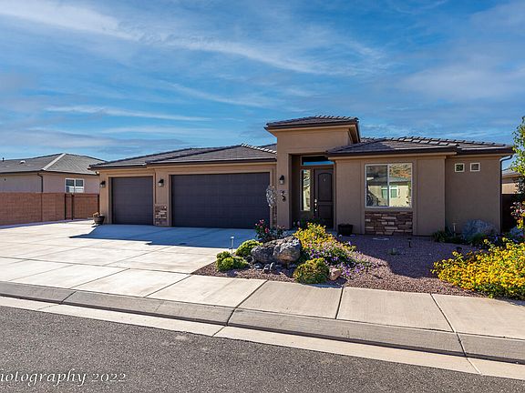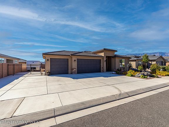Enjoy hiking, blue sky, sunshine & outdoor living? Peregrine Pointe overlooks the Virgin River so it is a short hike from home to ''Little Babylon''. Only 8 minutes to Sand Hollow State Park, Sand Hollow Resort, red sand dunes, & 25 miles to Zion National Park entrance. The xeriscape yard has a rainbow of flowers attracting beautiful hummingbirds. 3 car garage + cement RV pad RV pad behind the iron gate is extra wide to make it easy to park your toys. 10x20 covered patio makes it easy to enjoy a shaded BBQ in the back yard.