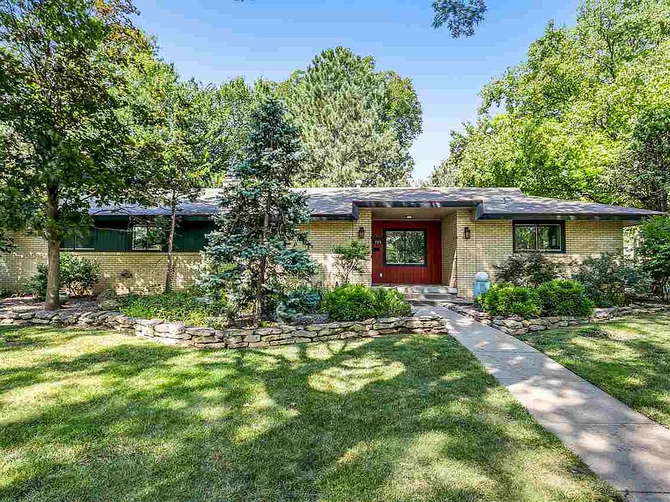 Welcome home to 725 N. Brookfield! Pulling up you will instantly notice the mature trees that canopy the street, the landscaping that surrounds the "L" shaped Mid Century Modern home and spacious corner lot! Inside you'll see freshly refinished hardwood floors, tons of windows and an open living room/formal dining room floorplan that's perfect for entertaining. Down the hall, on the south end of the home, there are two large bedrooms, one with access to the beautiful backyard and a hall bathroom. On the north end of the home, the kitchen is open and has an additional eating space, there's an updated bathroom, main floor laundry room and a flex room with a closet that could be a bedroom with access to the backyard or a main floor family room. Downstairs is a partial, unfinished basement that's perfect for storage and houses all the mechanicals. Don't miss this one of a kind, mid-century home!