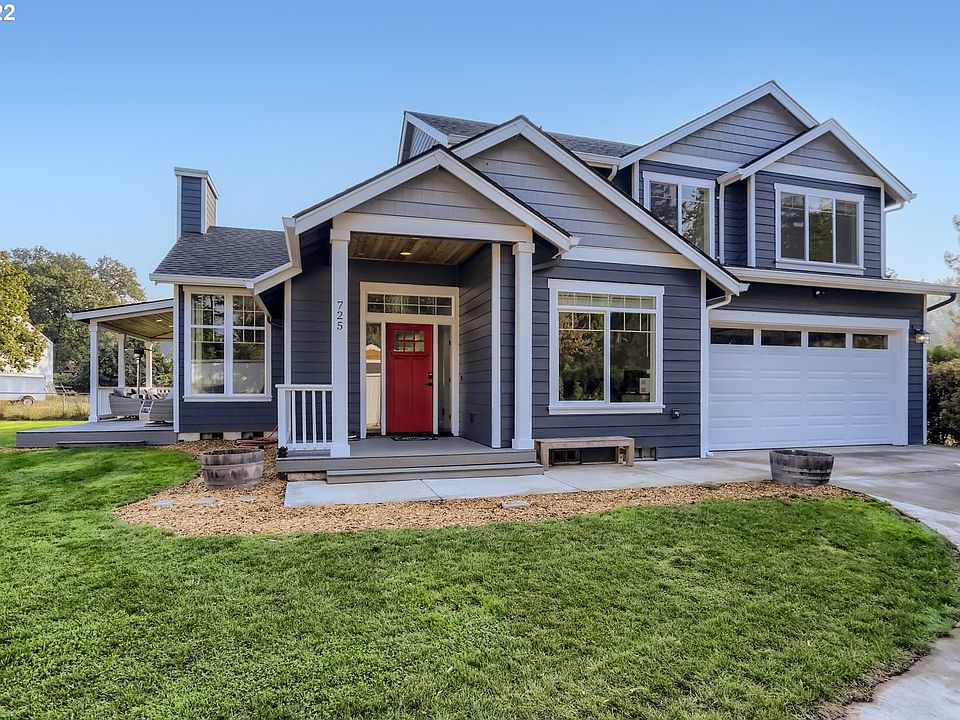 This 4 bedroom home features engineered hardwood floors on the main level, open concept kitchen with island, stainless steel appliances, Jenn Air gas range, dining area, buffet, pantry, all overlooking the huge living room that has a vaulted ceilings and a beautiful gas fireplace and amazing natural light. Laundry and one bedroom and the office all on the main level. Owner's suite complete with walk-in closet and an amazing step-in shower. Enjoy your evenings on the wrap around covered porch.