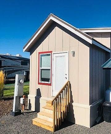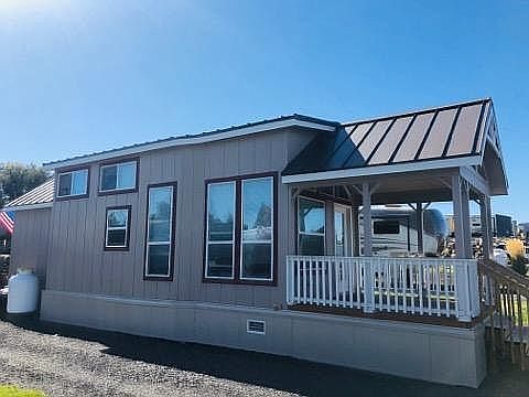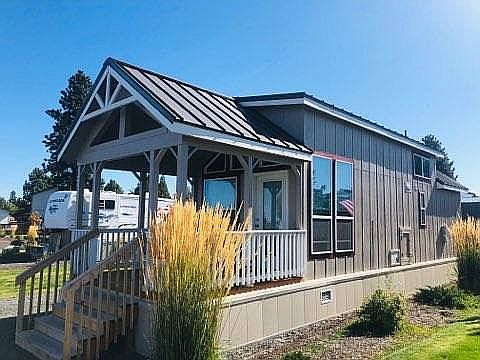 Price reduction on rare find in beautiful Bend. 2019-2020 Palm Harbor Park Model Home located in NE Bend. Cascadia Model. 11' 2" wide. 34 ' long with an additional 10' x 11' covered porch. One bedroom, One bath with 10' x 10' loft. 380+ square ft of living space on bottom floor that feels like more. Lived in for less than six months. Like new. Very spacious with full size appliances. Vaulted ceilings, well insulated and so much natural light. Alder wood cabinets. Top-of-the-line skirting. Could be that great Central Oregon get-a-way home or a great starter home for two to three people located in a wonderful RV park right in town. Well built and move in ready!