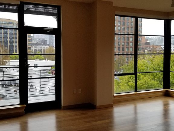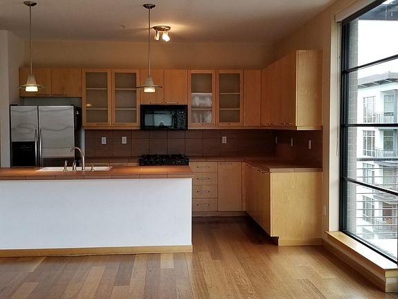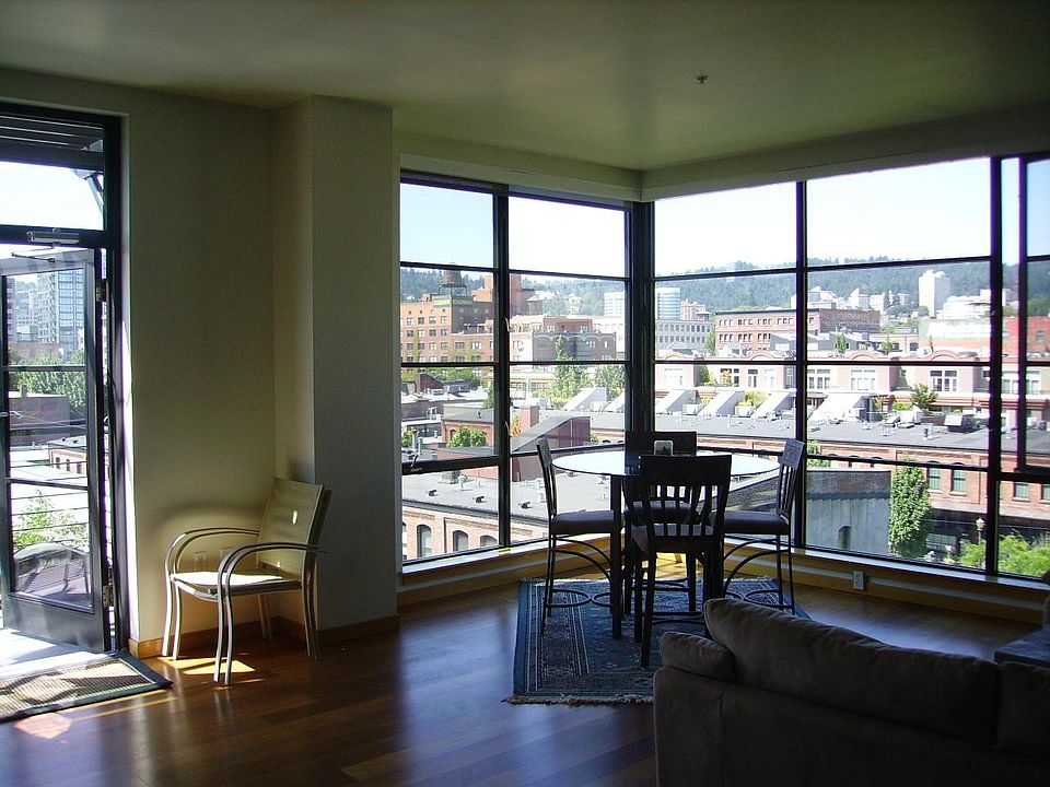 Tanner Place condominium with 2 legitimate/conventional bedrooms! Large walk-in closets. 1400 sq. ft. Stack stone fireplace in the living room. Balcony large enough for table, chairs and BBQ! Corner wall of windows facing the beautiful atrium and lushly landscaped Irving St. pedestrian walkway. Gleaming hardwood floors. Stone tile counters in the kitchen, which has a gas range and side-by-side stainless refrigerator. Washer/dryer included. One secured parking space and storage area. In the heart of The Pearl District, across the street from Jamieson Park. Streetcar runs on both sides of the building! This is a very special condo. One year lease. Assigned parking space & storage room. Water, sewer & garbage included. No smoking.