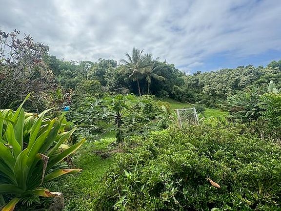 Nahiku tropical location with all the amenities; County water meter, public power service, Hawaiiantel fiberoptic services, access on a paved County road. The vintage home has been occupied and cared for by the same tenant for 38 years. The surrounding gardens are full of collections of special plants, fruit and flowering trees and a robust vegetable garden. The property has about 1200' of frontage on Makapipi Stream with pools and waterfalls. Survey and preliminary mapping for a 3-unit CPR has been completed for the entire 39 acres, see Associated Docs. Hana Town with shopping, dining and beaches is 30 minutes from Nahiku.