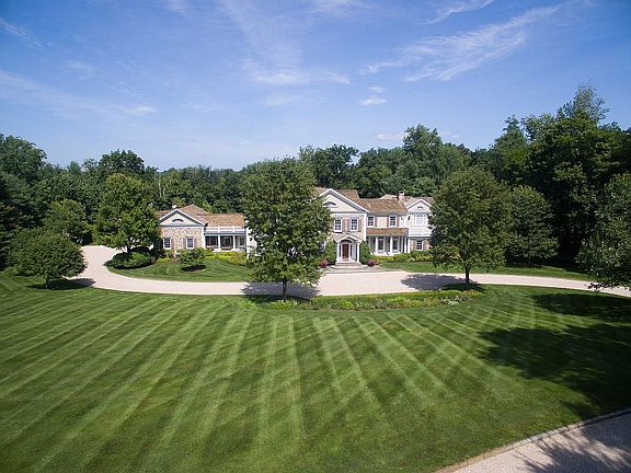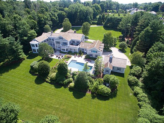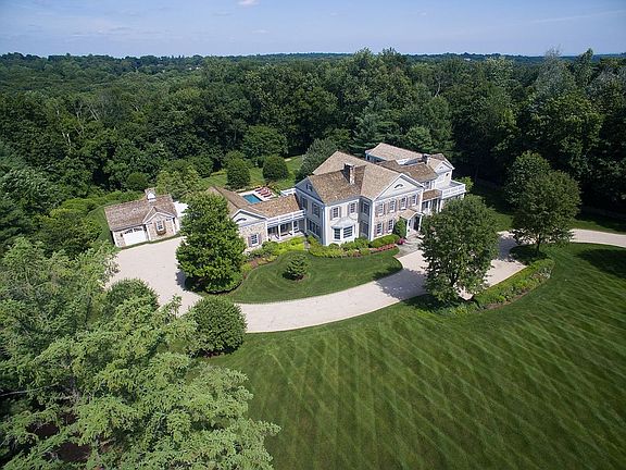 Impressive stone and clapboard custom estate located on New Canaan's most prestigious Ridge. Masterfully built, this elegant Judith Larson designed home has four finished floors of extraordinary amenities, exquisite millwork & special features - this gracious home is absolutely stunning. The first floor has a huge billiards room with full bar & wine cellar, plus a cinema grade home movie theater. The master suite boasts two separate baths with a steam shower and jet tub, sitting room, home office & exercise room. The home is set on six exceptionally private acres that feel like your own park. The 6+ acre property has a gated entry, formal parking courtyard, 5 hole golf putting green, expansive flat back yard sited for a tennis court, heated pool with spa and pool house. The area and private drive has a high walkability score. The pool cabana has a kitchen, changing room, washer/dryer and full bath. The finished lower level (4,000+ SF) includes a game room, TV room, playroom, home gym, art room, half bath, recreation room, and finished storage. Four car garage including a detached garage. This home is optimally designed for comfortable living as well as the most elegant formal entertaining both inside and out.