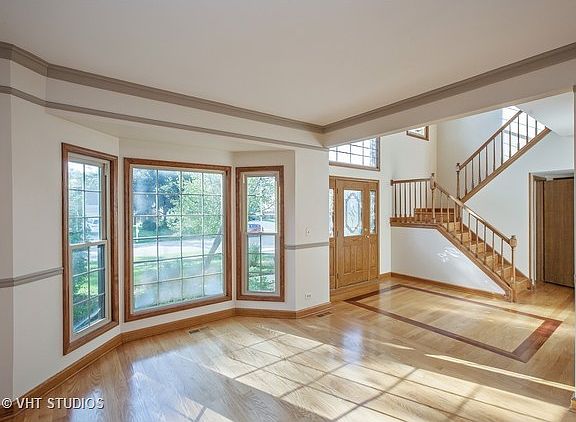 Beautiful Brick-front home on a wide wooded lot. The pretty Lead Glass entry Door system opens onto an inviting 2-story foyer. Hardwood flooring in the foyer, stairs, formal Living & Dining Rooms and Kitchen. Distinctive Kitchen with stainless steel appliances. Eating Area has a large Bay window. Spacious Family Room with brick surround fireplace. Built-in wood shelves and cabinetry on either side. French Door leads to a 3-Season Room addition and a Deck. Master Bedroom suite/large Master Bathroom. All bedrooms are spacious. Convenient 2nd floor Laundry set-up. The finished Basement features a large Recreation Room, a 2nd Kitchen with a Eating area. Plenty of storage areas. Furnace, A/C, 50-gal hot water heater & Aprilaire humidifier replaced in '08. Roof, siding & gutters replaced in '07. Garbage Disposal new in '16. Recently painted and all carpeting replaced. One-Year Home Warranty included. Make it your home to enjoy!