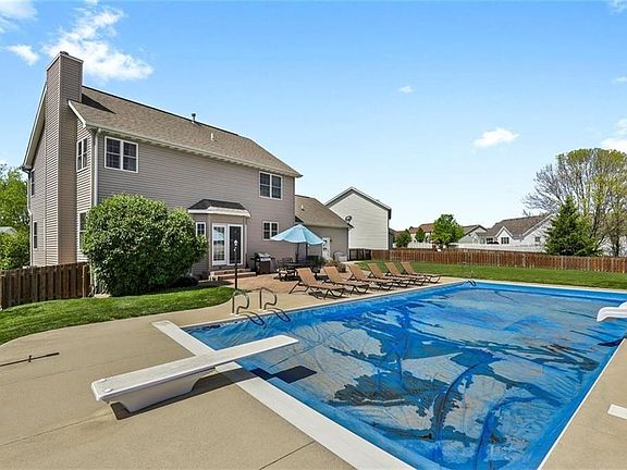 If you have ever dreamed of spending the entire summer poolside with family or becoming the ultimate entertainer...Welcome Home!! This stunning traditional home has high end finishes and natural light throughout. Open floorplan kitchen is spacious with granite countertops and a walk in pantry. New kitchen appliances (2019/2020), new main level vinyl flooring (2016), front door (2018), light fixtures (2019), XL water heater (2021), and a new master shower (2021) are just a few of the updates you will see as you explore. But let's talk about the heated POOL!! 20x40, 3.5-8ft. deep with diving board and waterslide, new liner (2019) and a brand new electric cover (2021). Surrounding light fixtures on patio each have outlets to recharge phones as you sunbathe. Relax and play in the one of a kind pool house (2015) with kitchenette (all season fridge and sink), another FULL BATHROOM, and Bose stereo system. Enjoy this Fourth of July in a whole new way - don't wait, this one is going to fly!!