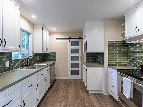 INCREDIBLE Turn-Key Mt Shasta home in highly sought after neighborhood near beautiful parks & schools! Newly renovated LARGE 4 BEDROOM, 3 BATH (1 full and two 1/2 baths), with custom interior design & finishes including luxury vinyl plank floors & carpet throughout. Beautiful brick hearth fireplace, renovated kitchen equipped with newer appliances, custom fogged-glass barn pantry door, oversized stainless sink & gorgeous subway tiled backsplashes. Custom paint throughout with interior, shaker 5 panel doors, ceiling fans, LED recessed lighting on dimmers & plenty of storage. Upstairs is a huge versatile family/media/room or private suite with 1/2 bath & double vanity, luxury faucets & toilet. Home has a metal roof, electric baseboard heaters on individual thermostats, Solar Tube skylights and vinyl dual pane windows. Custom Hunter Douglas blinds on most windows. Enjoy a fully fenced & gated backyard oasis; surrounded by flora, trees, lawn, garden beds . Large storage shed with electricity and patio area for outdoor entertaining & stargazing. There is a 2nd refrigerator in garage for Tenant use, seller will not replace or maintain if it fails. Included Refrigerator (2), Dishwasher, Microwave, Washer/Dryer. Heat is electric Baseboards and High efficiency Monitor/Toyo Kerosene Stove and Fireplace. Single car Garage Attached, Off Street Parking. Tenant pays utilities.
