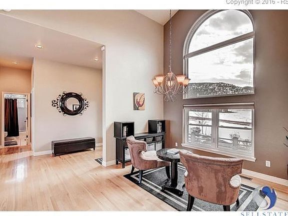 This custom home is loaded with upgrades located in an amazing, quiet 1 acre lot in beautiful Palmer Lake with beautiful 360 degree views of rocks and bluffs. As you enter through the front door you walk into an amazing open and bright living room. Entertain in the inviting kitchen and dining room.